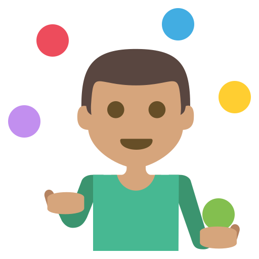 | Emotikony | 🤹🏽 |